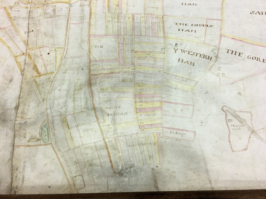 1624: part of map of Sandore Sutton estate (Pond on left hand side of map). Note: Sutton Drove runs from top to bottom of map on right hand side of Pond. (Map courtesy of The Keep).