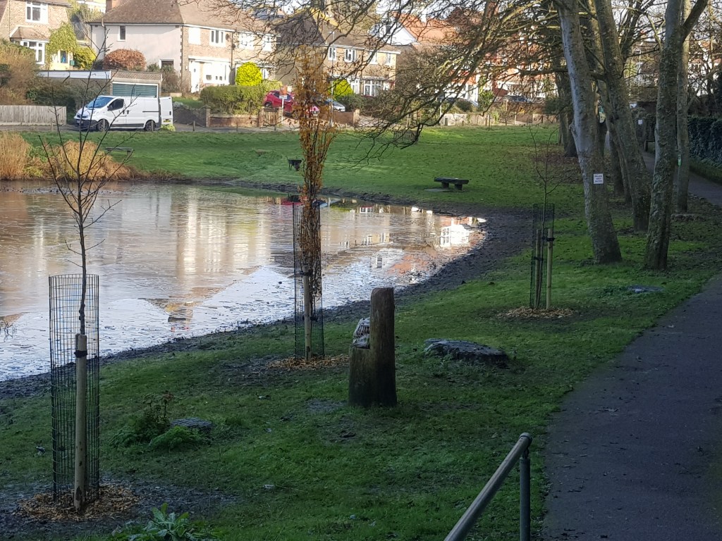 We’re delighted that in collaboration with Trees for Seaford we completed the planting of three new trees on 2nd December. They have been planted on the bank side of the pond to replace some of the trees the Council were forced to fell as they were diseased and unsafe.